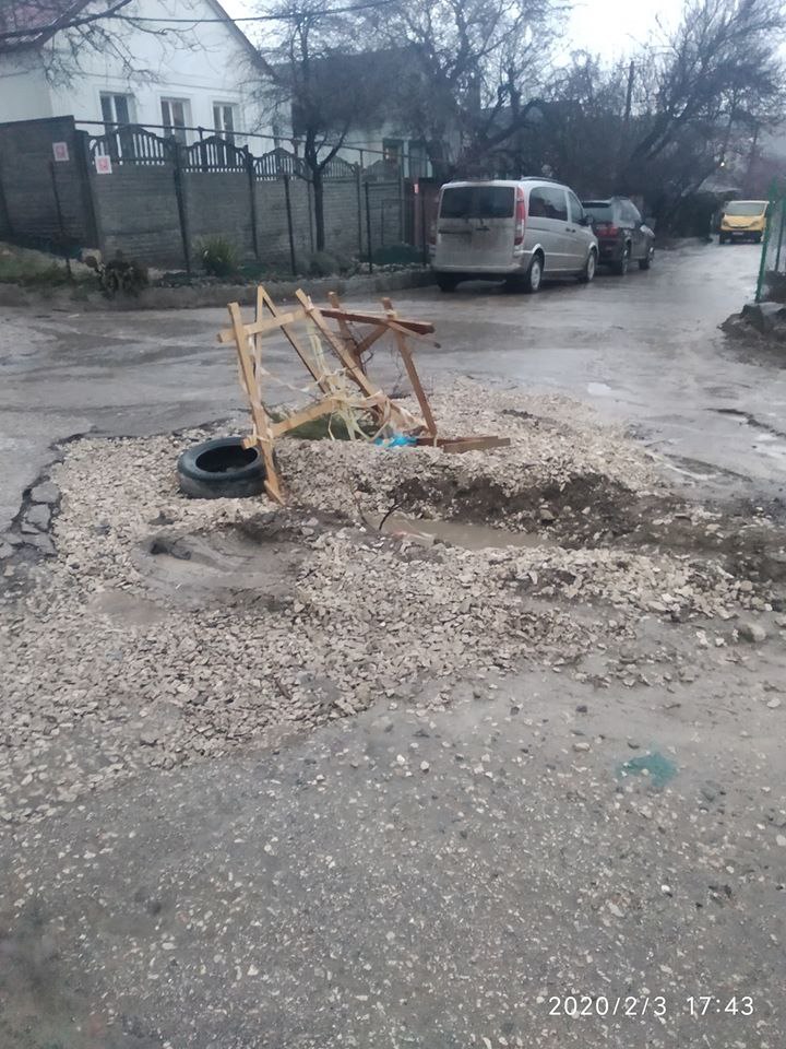В городе Симферополь показали, как выглядит улица. Там посреди перекрестка видна яма, а асфальта давно уже нет. Аварийный участок оккупанты не ремонтируют, но он огражден досками.