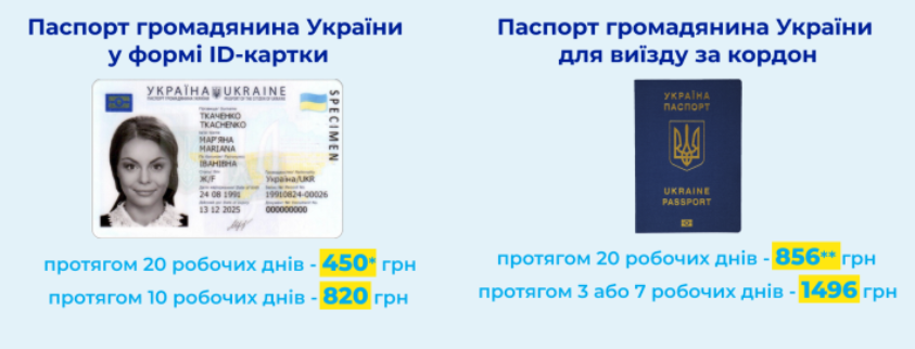 Общая стоимость административного сбора при оформлении паспорта гражданина Украины в форме карты в течение 20 рабочих дней составляет 450 грн., в том числе: стоимость административной услуги - 126 грн. стоимость бланка – 324 грн.