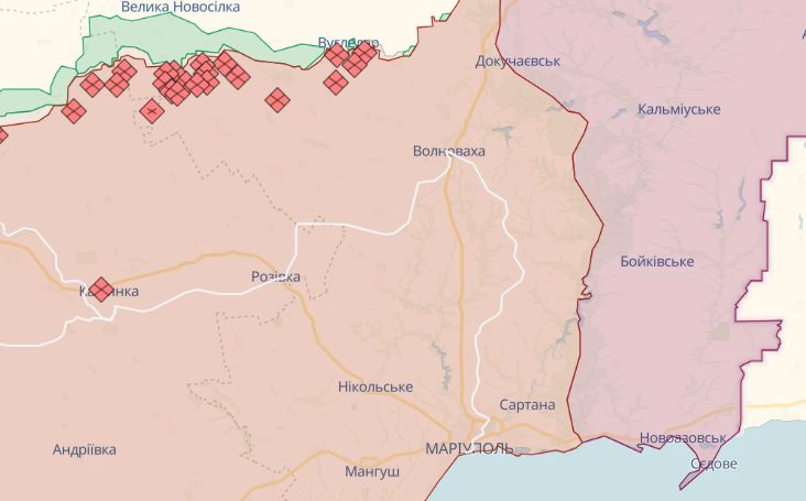 Россияне строят оборонительные сооружения вокруг временно оккупиованного Мариуполя по своего рода треугольнику: селения Розовка-Никольское-Стародубовка, что указывает на то, что они ожидают наступления ВСУ со стороны Запорожской области.