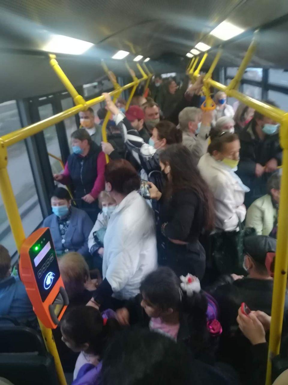 На фото видно, что людей в транспортном средстве очень много, люди стоят вплотную друг-другу, что категорически запрещено согласно правилам карантина.