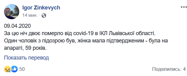 В ночь на четверг, 9 апреля, во Львовской области от коронавируса умерли еще двое человек, которые находились в медицинских учреждениях.