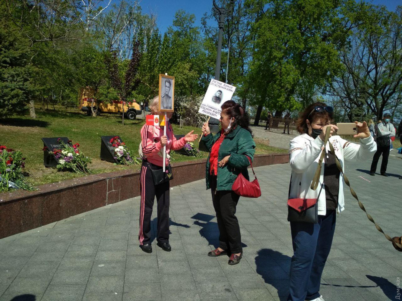 В субботу, 9 мая, в День победы над нацизмом во Второй мировой войне на Аллею славы в Одессе пришли сотни жителей города, чтобы возложить цветы к памятнику Неизвестному матросу. Не все граждане соблюдали правила карантина, пророссийские активисты вели себя агресивно.