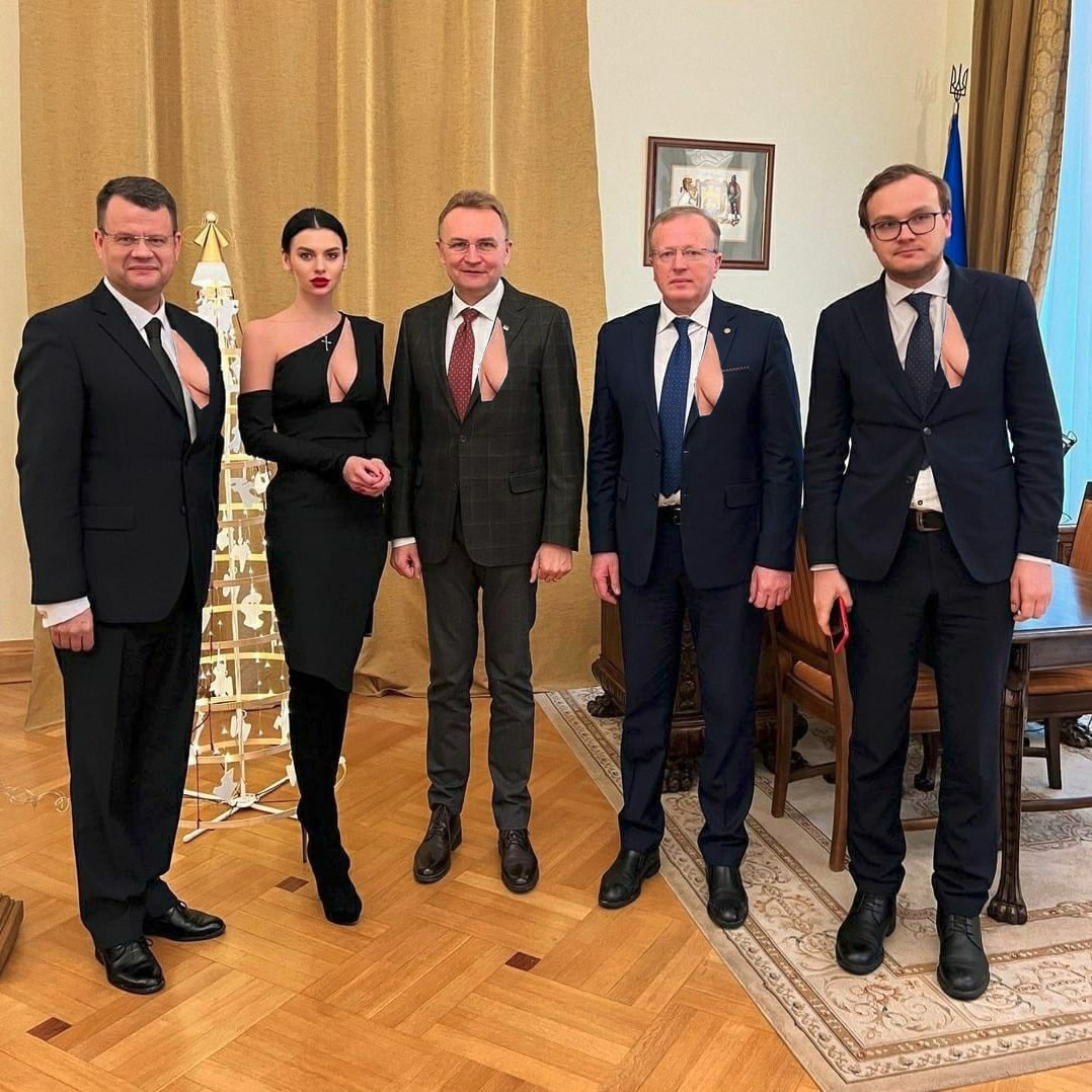 Украинцы высмеяли пикантный наряд Кристины Тишкун, который девушка надела на официальное мероприятие с участием мэра Львова Андрея Садового и замминистра образования Игоря Гарбарука.
