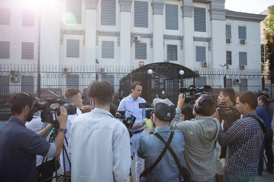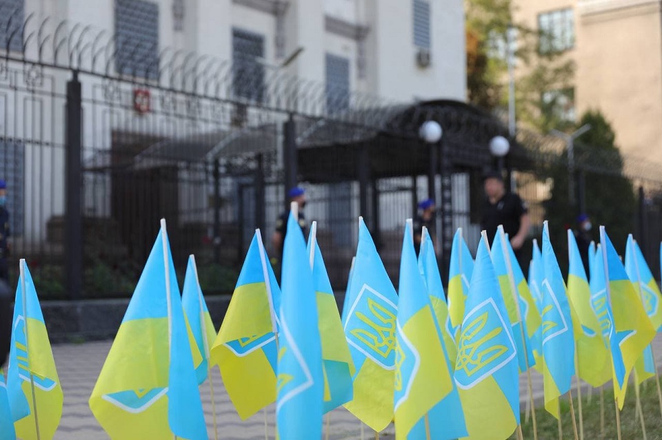 Организатор и политический эксперт Николай Давидюк рассказал о цели мирной акции, которая проходила в День флага под российским дипломатическим представительством: