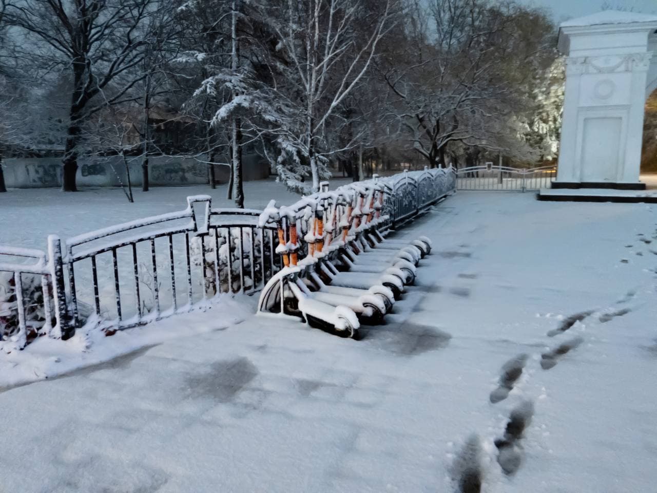 Так как снег в Крыму не задерживается надолго, жители активно фотографируют и снимают на видео снег, которого выпало довольно много. Местами еще стоят деревья в листве и на их фоне белое покрывало выглядит невероятно.