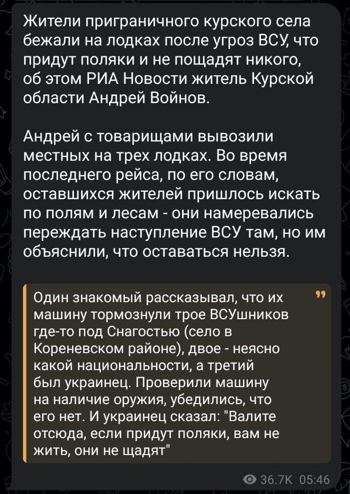 Житель Курской области Андрей Войнов ссылается на якобы сказанные бойцами ВСУ слова о поляках.