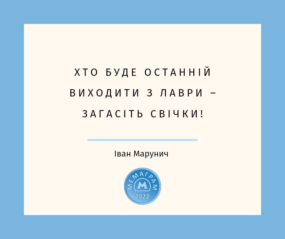 На последней картинке написано: "Хто буде останній виходити з Лаври - загасіть свічки".