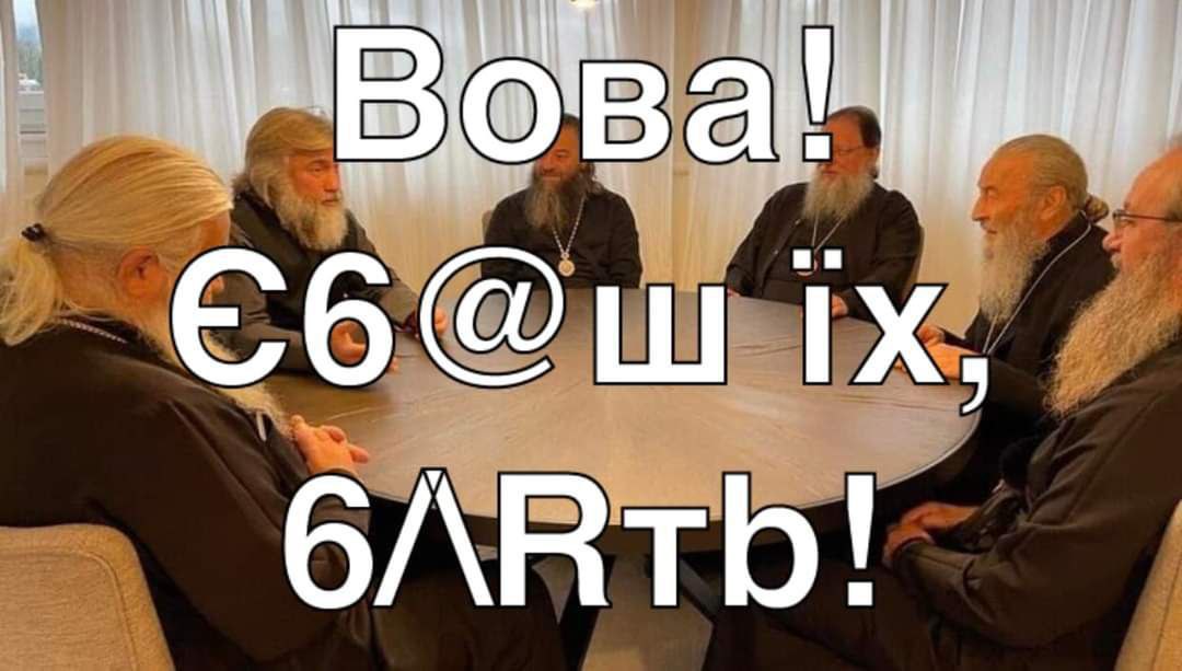 На другой фотографии Митрополит Онуфрий встретился с пророссийским бывшим народным депутатом Вадимом Новинским и якобы обсудил с ним пути оказания помощи находящимся в Германии украинским переселенцам – на фоне снимка фраза: "Вова, *баш їх, **ять".