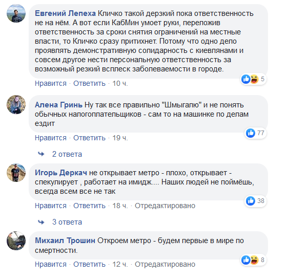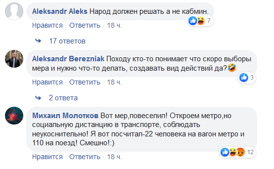 "Удивляет непоследовательность в определенных этапах. Еще пару дней назад собирался киевский штаб и там сошлись во мнении, что открыть с ограничениями довольно трудно. Подземка, если открывается - то работает полноценно. Конечно, можно масочный режим, дезинфекцию, скрининг, но ограничивать на перроне, в вагонах довольно трудно", - сказал он.
