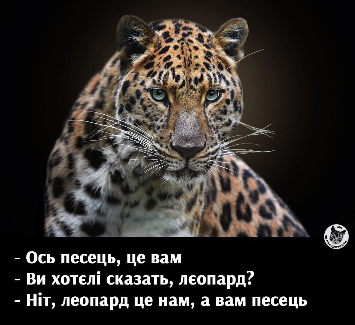 "Вот песец, это вам. Вы хотели сказать леопард? Нет, Леопард - это нам, а вам - песец", - написано на одной из иллюстраций с леопардом.