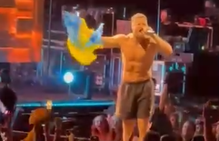 Певец поднял украинский сине-желтый флаг, исполняя песню "Walking The Wire" ("Прогулка на проводах").