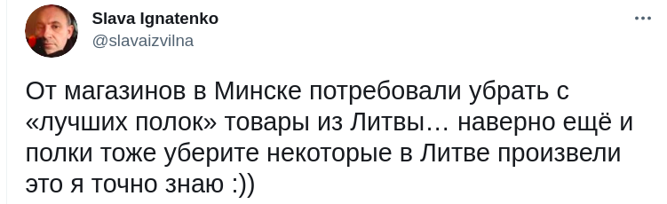 Речь идет о товарах с Украины, Литвы и Польши. Кухареву не нравится, что "конфеты, сдоба, чаи, печень" стоят в белорусских магазинах на "лучших полках".