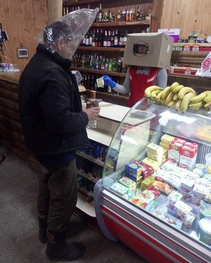 В сети появились забавные фото людей, которые изобрели для себя оригинальные защитные маски от коронавируса.