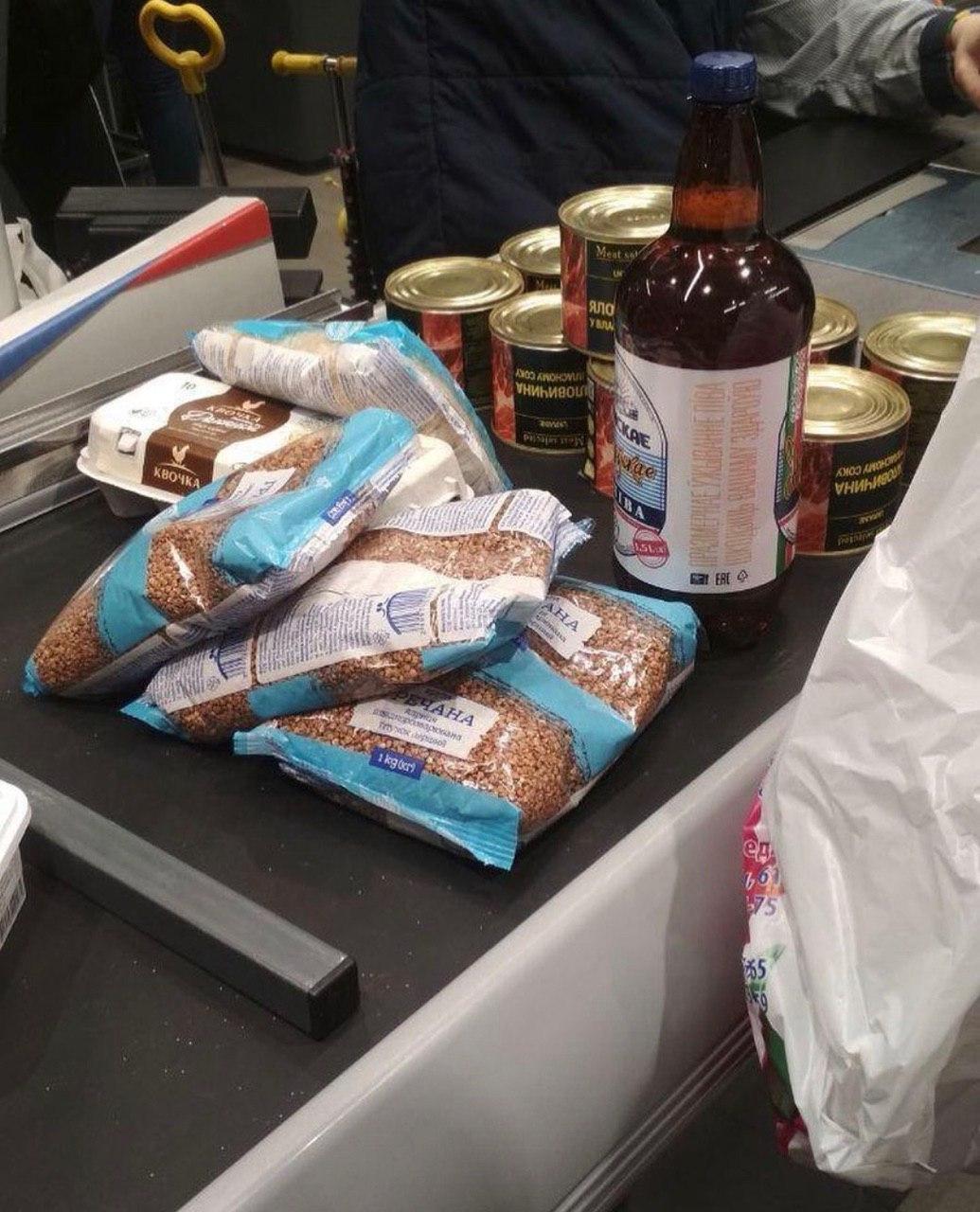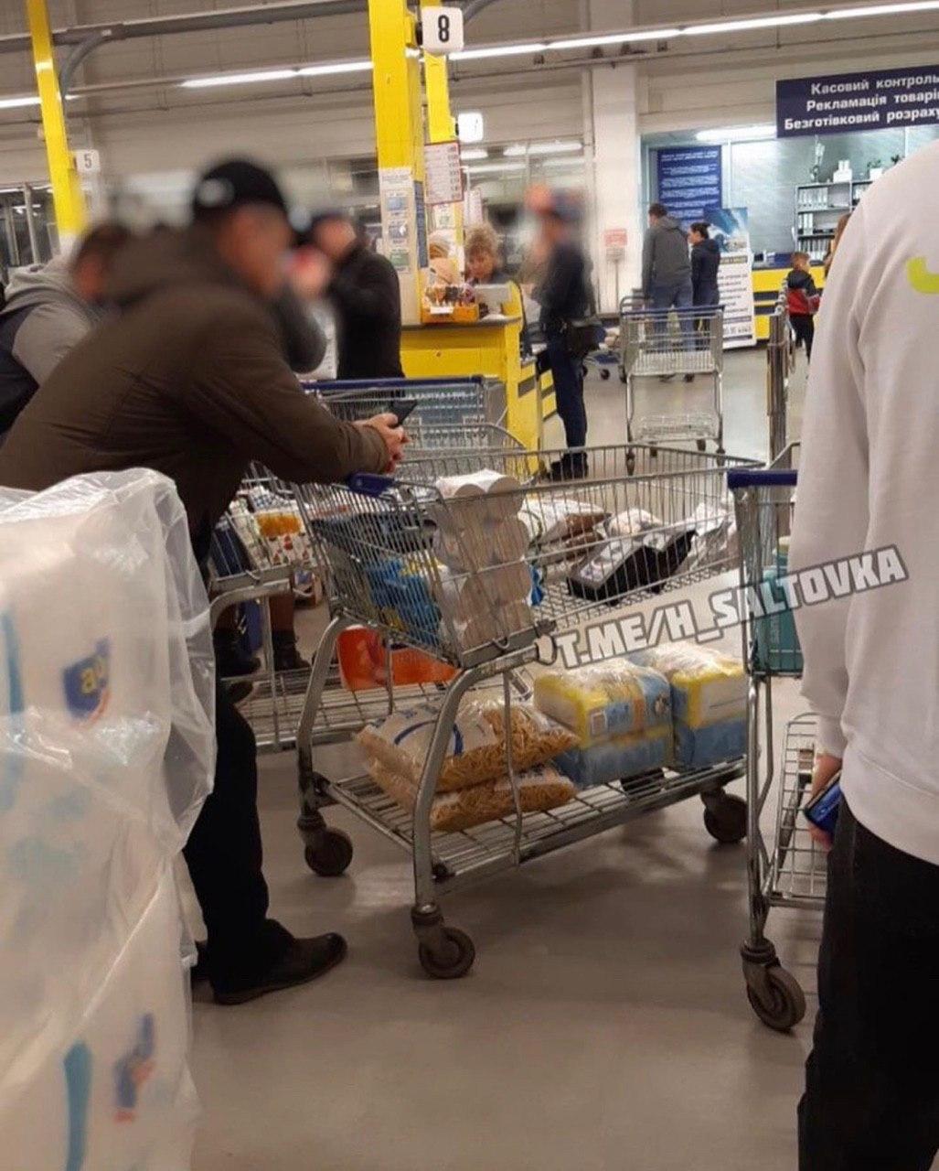 "В супермаркетах Харькова паникеры сносят гречку, макароны и консервы", - подписаны опубликованные фото.