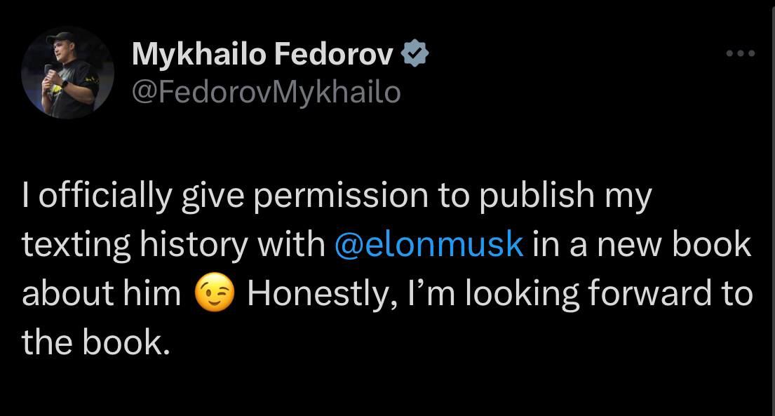 Также Федоров в Twitter написал, что дает разрешение Маску на публикацию истории их переписки.