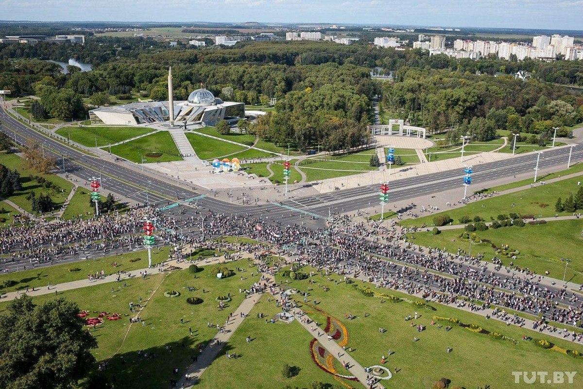 По словам очевидцев, число участников несанкционированного марша оппозиции в Минске превысило 150 тысяч человек.