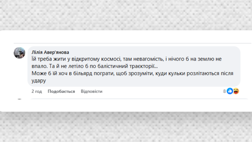Ранее спикер Воздушных сил Вооруженных сил Юрий Игнат прокомментировал упреки нардепа Безуглой о якобы падении целой ракеты, а не обломков. Он подробно объяснил, что благодаря кинетической энергии во время столкновения вражеская ракета либо взрывается, либо изменяет траекторию полета и в результате все равно падает на землю. Других вариантов поражать баллистику в Украине нет.