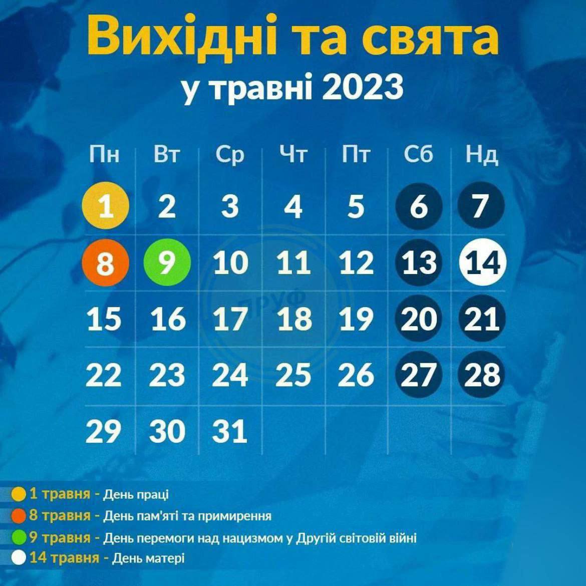 Ранее, до начала полномасштабного вторжения и объявления военного положения украинцам в мае предоставлялось два дополнительных выходных: 1 мая - День труда и 9 мая - День победы над нацизмом.