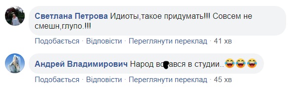 "Очень смешно на фоне реальных убийств, нападений и угроз журналистам", "захватывали "Прямой" - порвали четыре вересня", "Там бедные бабушки зрительницы попадали на пол и чуть не уписялись от страха, их, в отличие от Вересня, никто не предупреждал","Стремный какой-то креатив", - пишут в соцсетях.