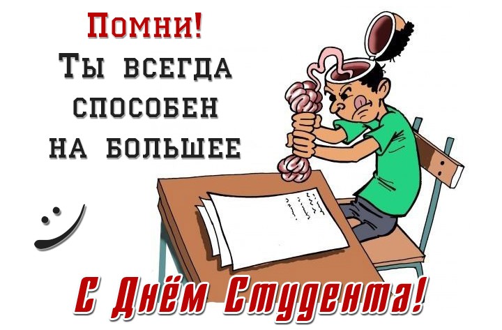 Поздравляю с Международным днем студентов, с призванием юности и веселья, великих стремлений и неугасаемого энтузиазма. Желаю все время что-то затевать, не упускать своих возможностей, не терять уверенности в своем успехе и всегда добиваться своих лучших побед.