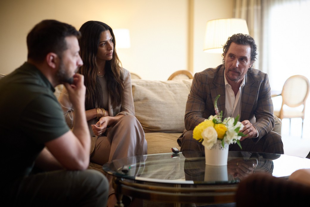 Президент Владимир Зеленский и первая леди Елена Зеленская во время визита в США встретились с голливудским актером Мэтью Макконахи, который на днях пострадал от укуса пчелы.