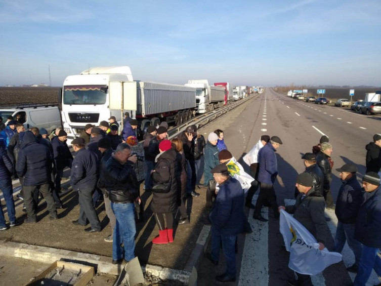 В рамках всеукраинской акции протеста против принятия в Верховной Раде закона о рынке земли активисты перекрыли трассу Киев-Одесса в районе села Демидовка Любашевского района Одесской области.