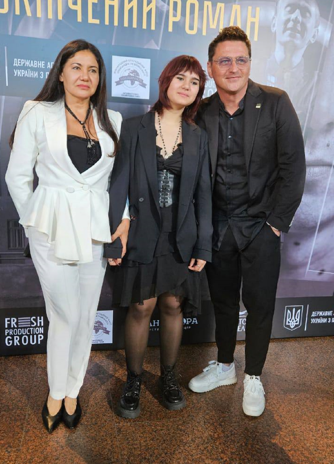 Фото - представители Семьи Петровских - меценатов киноленты "Будинок "Слово" Бесконечный роман" Анжелика и Александра Петровские с Вячеславом Довженко