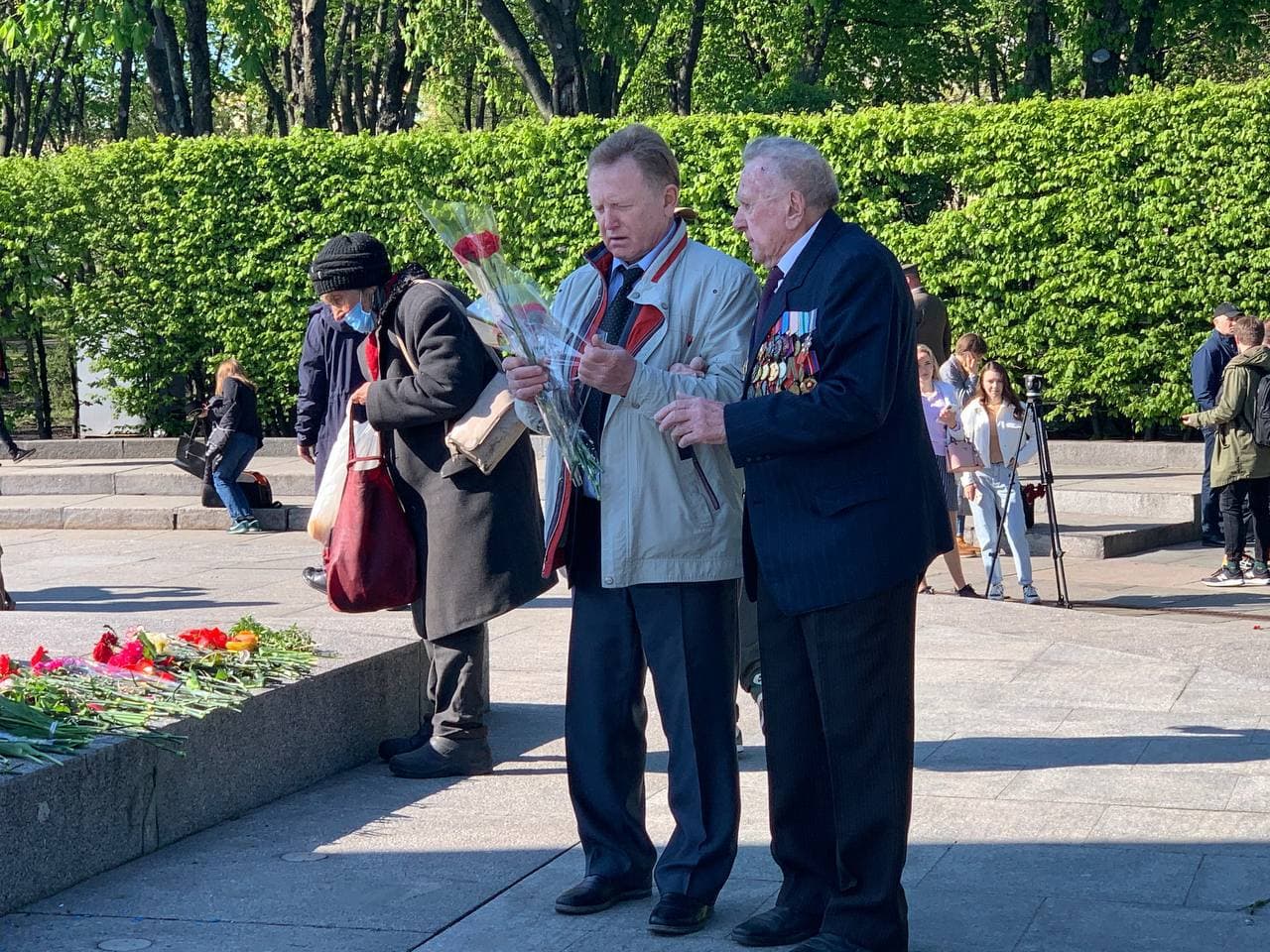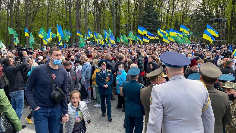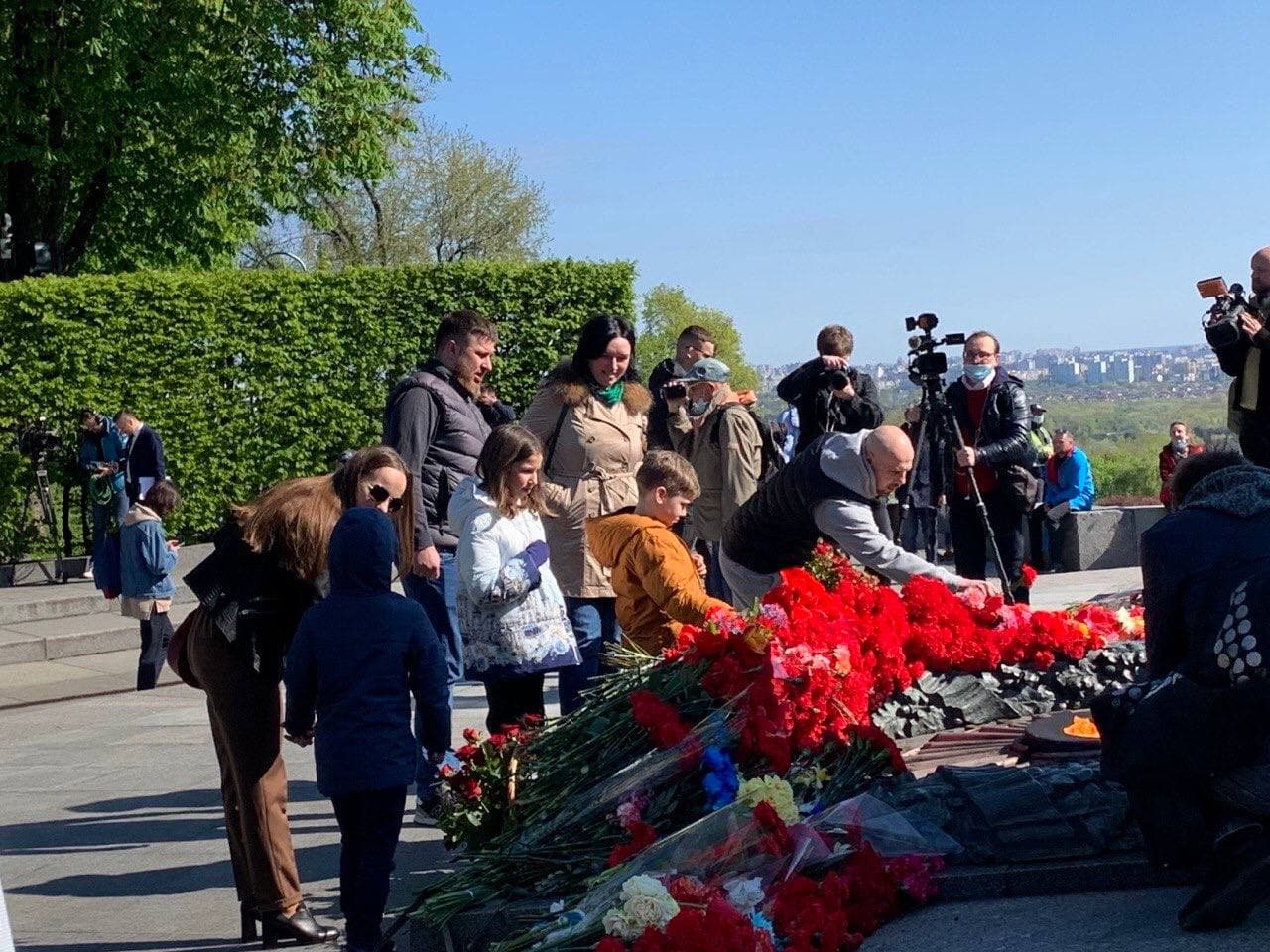 Как пишет "Суспільне", люди начали собираться группами в 8:00, подавляющее большинство из них - в защитных масках. На площадке перед аллеей дистанции не соблюдали. В официальной части приняли участие ветераны, представители ветеранских организаций, городских властей, бюджетных организаций, духовенства.
