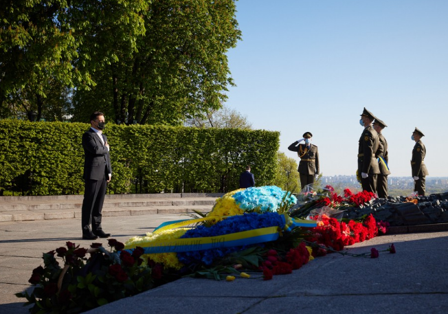 Владимир Зеленский принял участие в церемонии чествования памяти погибших во Второй мировой войне на площади Славы в Киеве. Церемониальная группа воинов почетного караула установила венок к могиле Неизвестного солдата. Глава государства возложил цветы к Вечному огню, почтив память воинов, погибших во время Второй мировой войны.