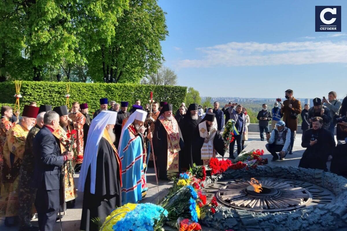 На Аллее славы прошли официальные мероприятия - цветы к памятнику возложили митрополит Киевский Онуфрий, спикер Верховной Рады Дмитрий Разумков и его заместитель Руслан Стефанчук.