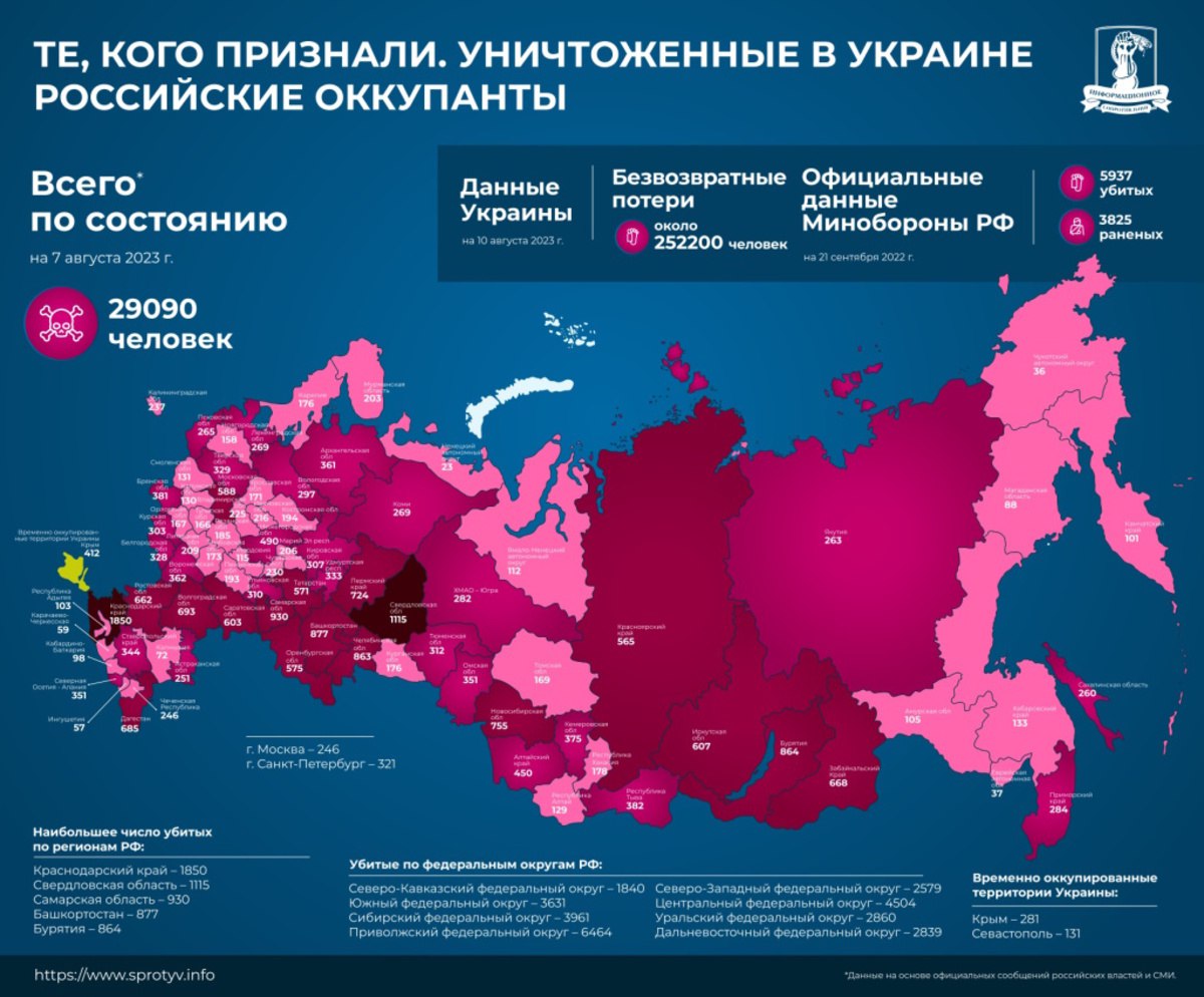 Если смотреть в абсолютных цифрах, то по количеству потерь лидируют следующие регионы: