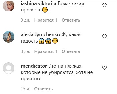 В комментариях Чукова пишет, что из-за медуз на пляже очень неприятно пахнет.