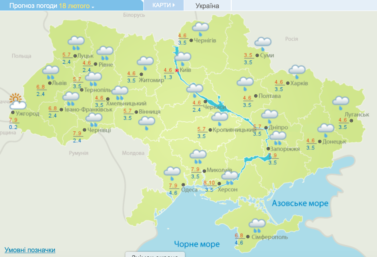 Погода в пятницу, 18 февраля, не осчастливит украинцев приятным солнышком или хотя бы сухостю. Осадки прогнозируются по всей территории Украины.