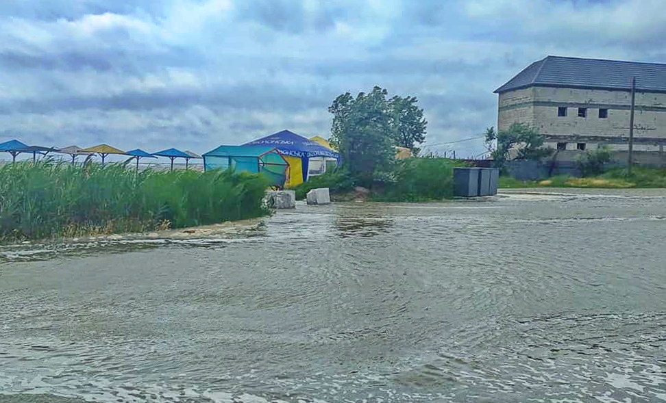 Пляж "Верховая" в Бердянске, Запорожская область, после шторма на море почти полностью затопило. Пострадали кафе и прибрежные места для отдыха.