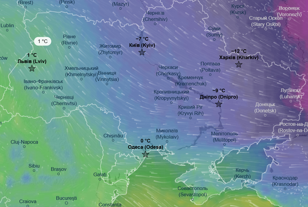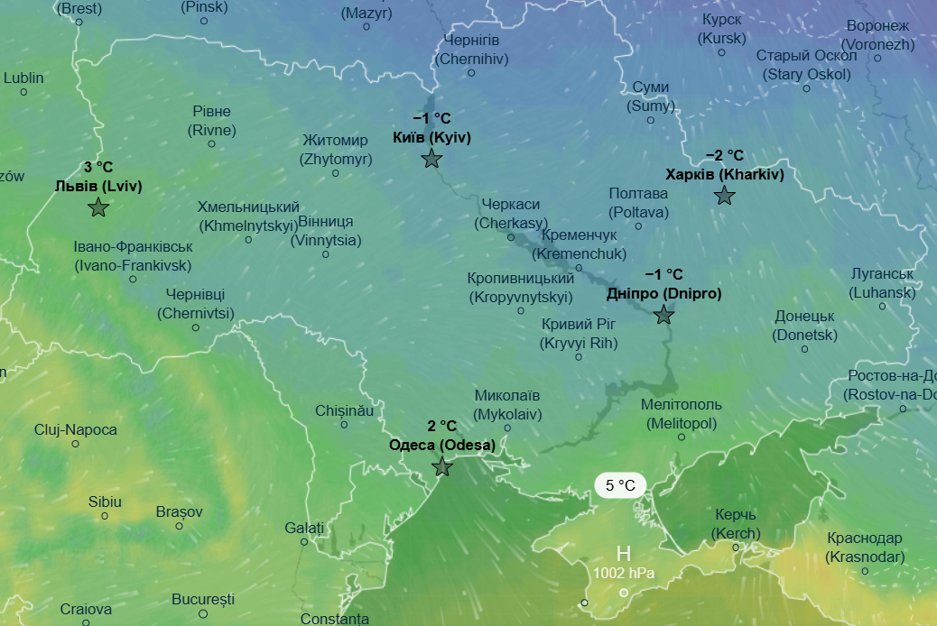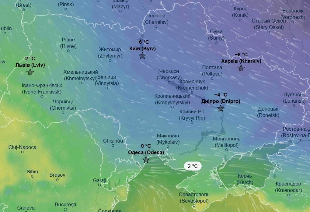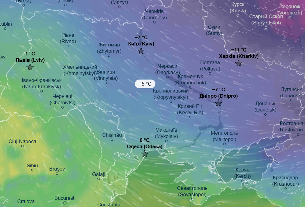В ночь на четверг, 5 февраля, морозы начнут отступать — экстремальные -18 °С ожидаются только на Сумщине и на крайнем востоке. На остальной территории Украины потеплеет — до -9...-11°С, а на западе и южных областях ночью прогнозируется комфортная зимняя температура в пределах -2...-1°С.