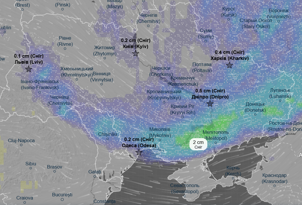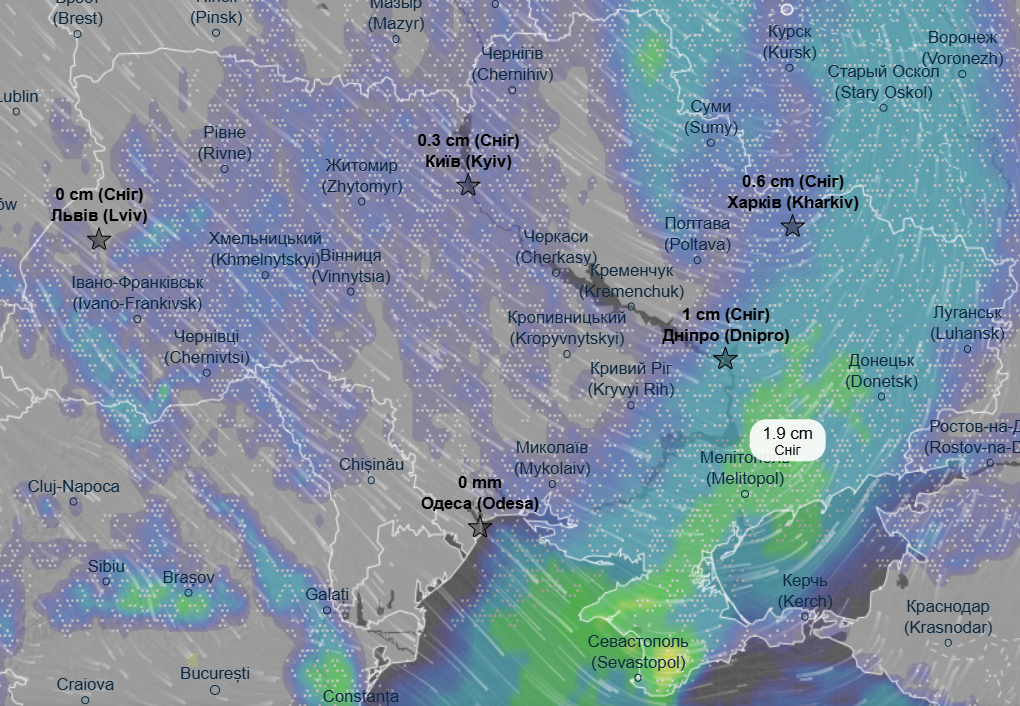 При этом почти всю территорию нашей страны накроет снегом – волна снегопадов придет с севера и до конца суток они еще будут сильными в Запорожской, Донецкой, Харьковской и Сумской областях.