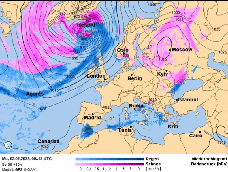 "Из-за деятельности атмосферных фронтов в большинстве областей 3 февраля периодически будет выпадать небольшой снег. В южной части Украины и на юго-востоке снег и мокрый снег будут умеренными, возможно налипание мокрого снега, осложнение ситуации на дорогах, при более высокой температуре воздуха - будет дождь. Осадки на юге Украины в отдельных районах будут достигать сильных значений, в Крыму завтра днем ожидается сильный дождь", – говорит Диденко.