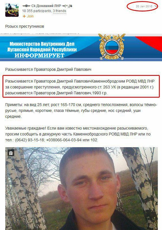 Так, по информации сайта "Миротворец", названный "украинским агентом" Дмитрий Праваторов участвовал в военных действиях против Украины с 2014 по 2016 год. В 2016 году его объявила в розыск группировка под названием "МВД ДНР", в 2018 году боевика задержали на линии соприкосновения. В 2019 году Праваторову было объявлено "официальное обвинения" – якобы он с помощью супруги одного из членов формирования "народная милиции ДНР" собирал данные об оккупационных войсках и передавал их СБУ.