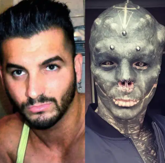 32-летний Энтони Лоффредо из Франции сделал множество операций, тату и пирсинг, чтобы выглядеть как "реальный инопланетянин".