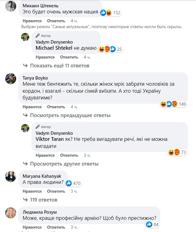 Пользователи гневно отреагировали на инициативу Денисенко. Некоторые комментаторы предложили сперва улучшить условия жизни в Украине, чтобы у граждан был стимул добровольно возвращаться. Другие же утверждают, что такие нововведения только усилят коррупцию среди пограничников и правоохранителей, которые продолжат выпускать из страны "нужных" мужчин.