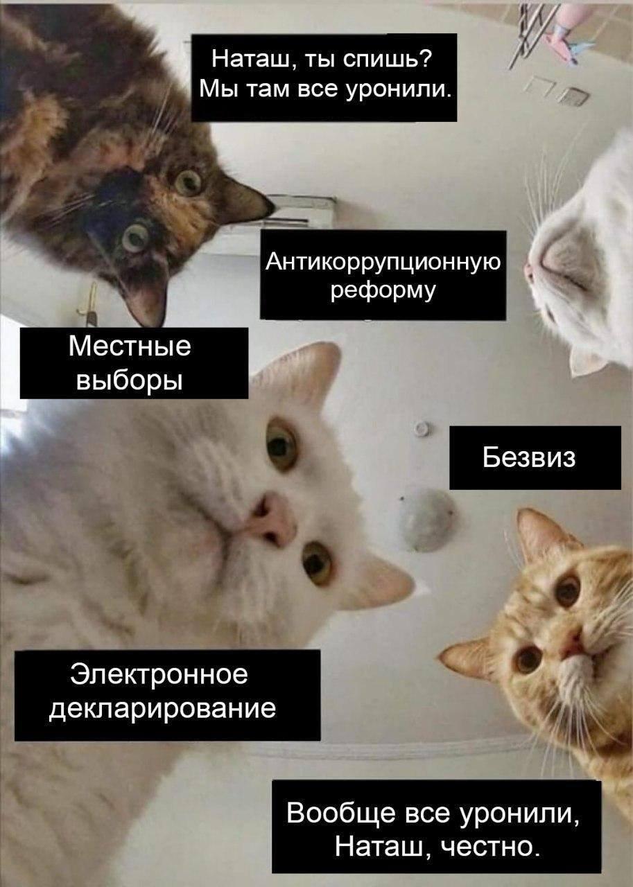 В частности, судьи Конституционного суда изображены в образе литературных персонажей сказочной повести "Три толстяка", которые утверждают: "Мы здесь власть". Не обошлось и без традиционных котов, которые, как обычно, будят Наташу признаниями, что они "все уронили".