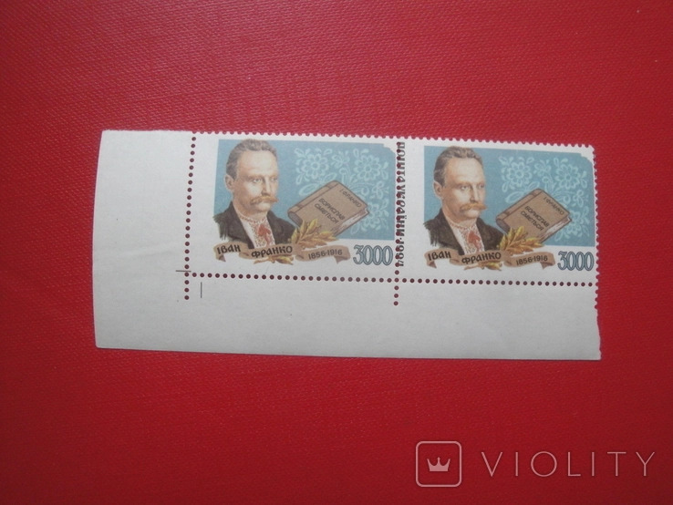 Речь идет о почтовой марке с изображением известного украинского поэта, прозаика и драматурга Ивана Франко (1856 - 1916) образца 1994 года. На то время в Украине еще в обращении были купоно-карбованцы - номинал марки составлял 3000 карбованцев.