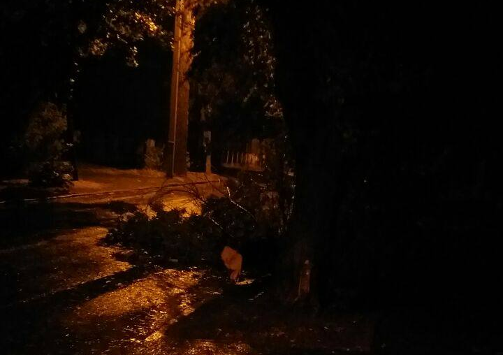 На улице Орловской ветер свалил ветки и оборвал провода, в результате чего вспыхнул трансформатор.