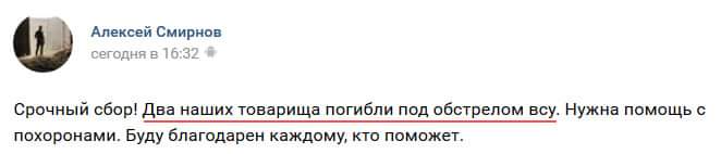Также Доник опубликовал скриншоты из социальных сетей, на которых подтверждается информация о двух погибших боевиках.