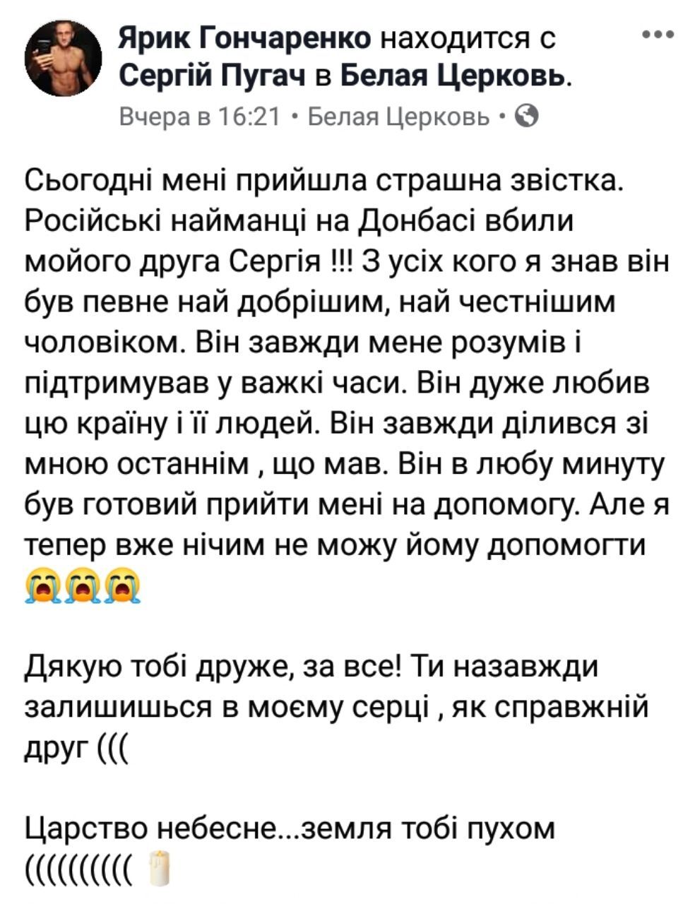 С Сергеем Пугачем попрощаются сегодня в городе Белая Церковь в 14:00 в доме номер 217 по улице Докучаева.