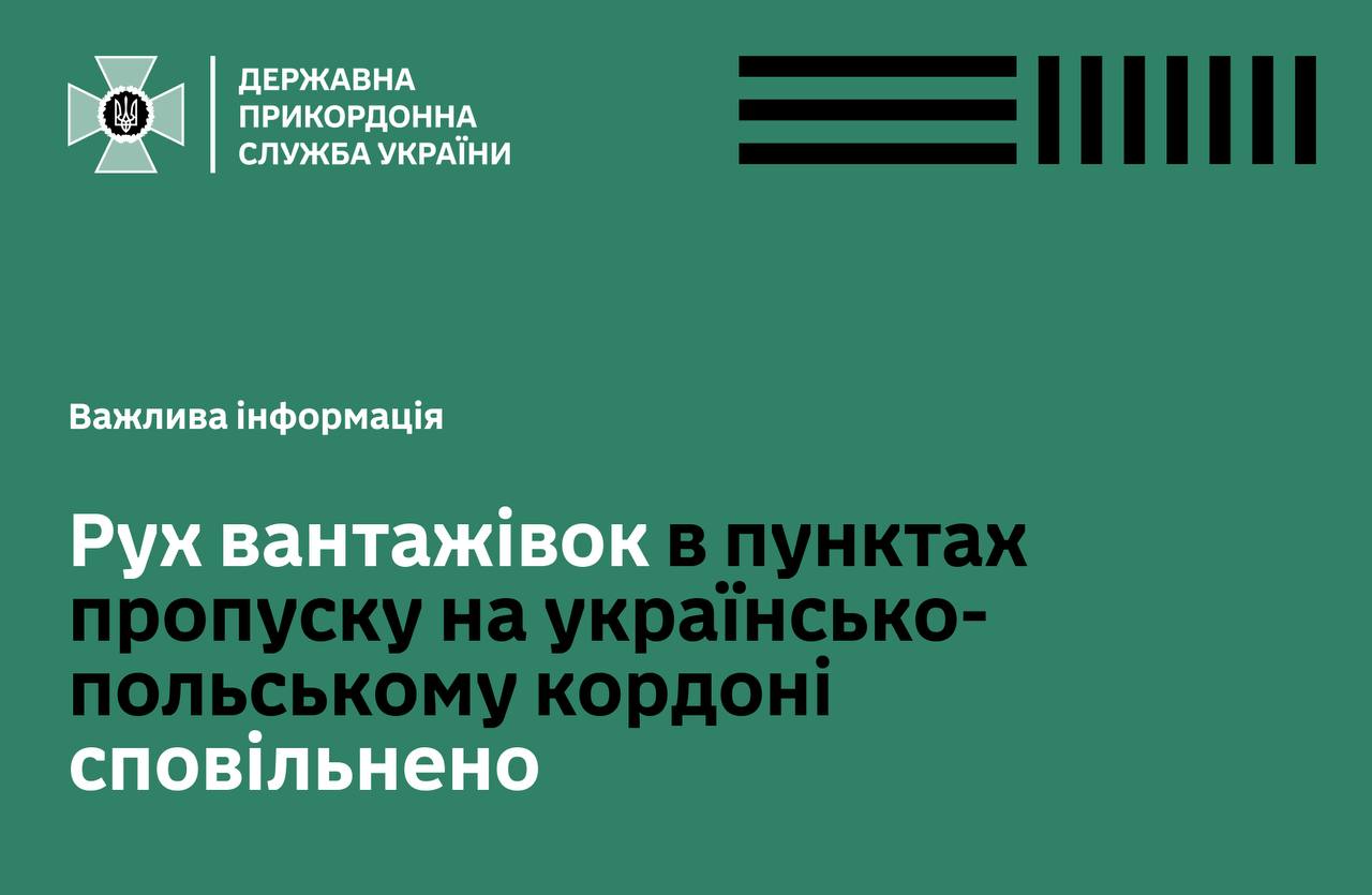 "Движение грузовиков в пунктах пропуска на украинско-польской границе замедленено. Произошел сбой системы таможенной службы Польши. В связи с этим оформление транспорта, перемещающего груз в Польшу, в таможенном отношении не будет проводиться", - говорится в сообщении.