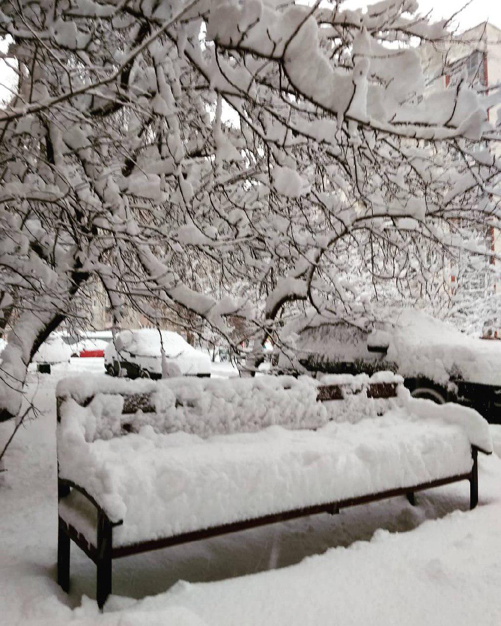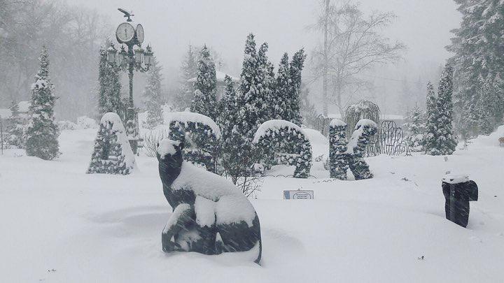 В ночь на 25 декабря на Харьков обрушился сильнейший снегопад. Город к утру превратился в белоснежную инсталляцию.