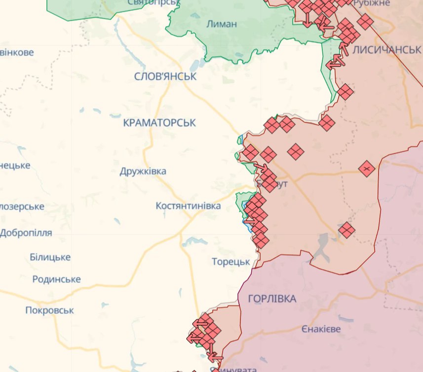 Лиманское направление: за сутки противник нанес авиационных ударов в районах Белогоровки Луганской области и Спорного и Раздолевки Донецкой области. Артобстрелам подверглись более 10 населенных пунктов, в том числе Белогоровка Луганской области и Торское, Диброва, Верхнекаменное, Раздолевка, Берестово Донецкой области.