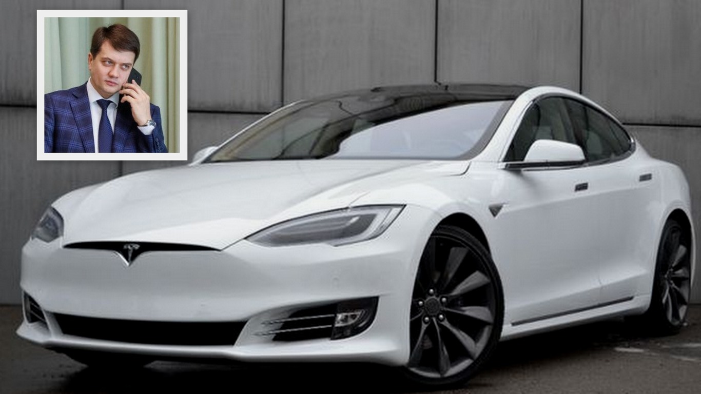Следующий в списке - спикер Рады Дмитрий Разумков, которому по душе современные технологии. У него есть свеженькая Tesla S 2017 года, которая записана на жену. Согласно данным в декларациях, этот электромобиль был приобретен за 750 тысяч, и он может разогнаться до 322 км/ч.