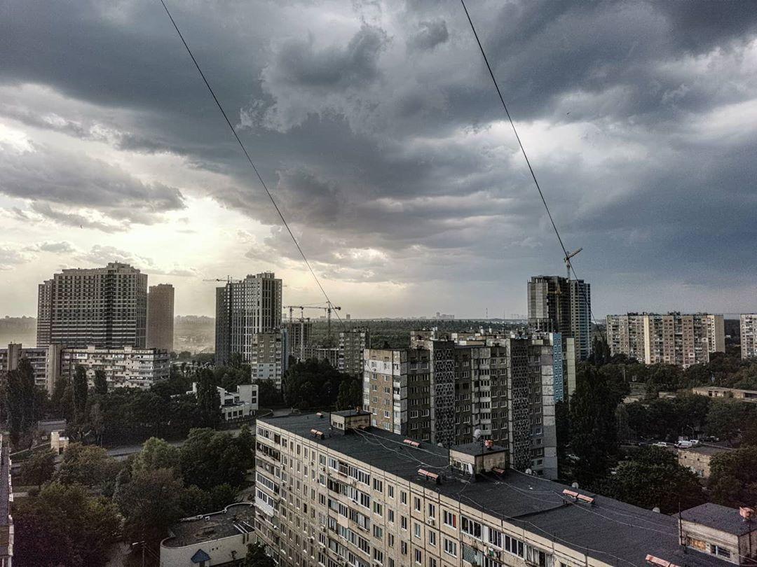 Как и сообщали синоптики, в четверг, 17 сентября, в Украине начала ухудшаться погода - на небе собрались тучи, ветер усилился до штормового, а под Киевом пронеслась буря с сильным ливнем.